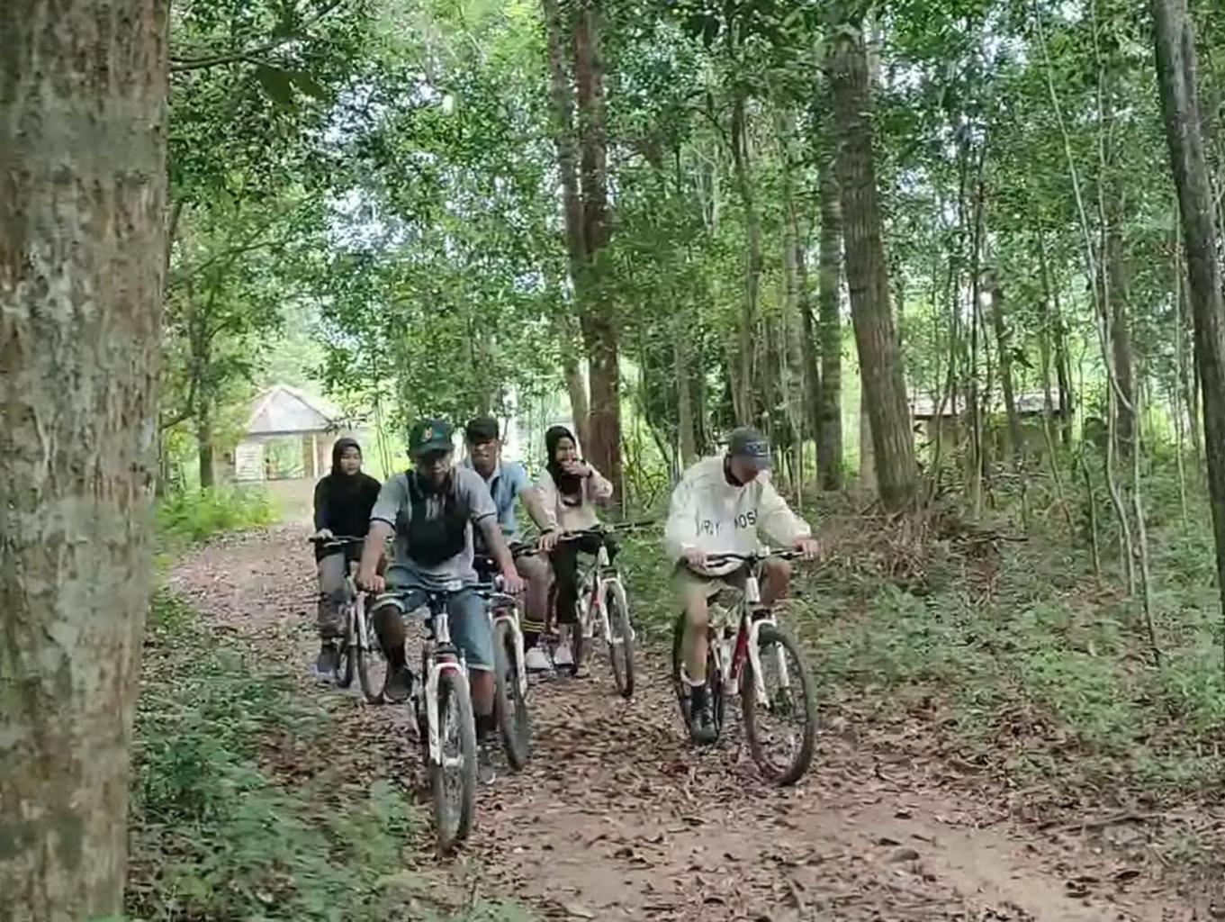 pengunjung juga dapat mengelilingi hutan adat ini dengan bersepeda, tentu saja pengelola telah menyediakan fasilitas sepeda untuk menjelajahi hutan ini.